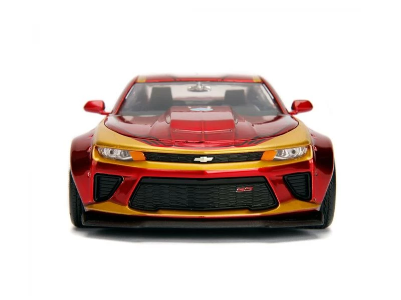 Mit Stilmerkmalen, die vom gepanzerten Avenger Iron-Man inspiriert sind, verfügt dieser 2016er Chevy Camaro mit breiter Karosserie über eine zu öffnende Motorhaube und Türen. Zu diesem Fahrzeug gehört auch eine 7-cm-Sammelfigur aus Iron-Man-Druckguss, die in jeder Fahrzeugsammlung eine herausragende Rolle spielen wird.