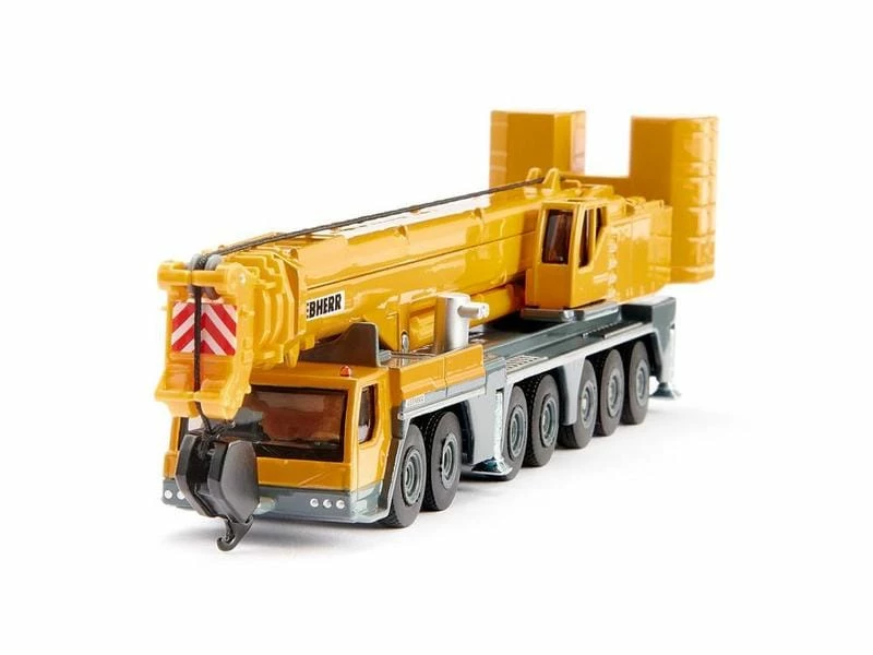 Ein Highlight auf der Baustelle ist der Mobilkran der Marke Liebherr. Mit seinem 7-achs-Fahrwerk und den vier ausfahrbaren Stützen ist der Kran ein standhafter Riese. Das Maschinenhaus ist um 360° drehbar und der teleskopierbare Kranarm kann gehoben sowie gesenkt werden. Das detailgetreue Baustellenmodell mit gummierten Reifen darf auf keiner Kinderzimmer-Baustelle fehlen.