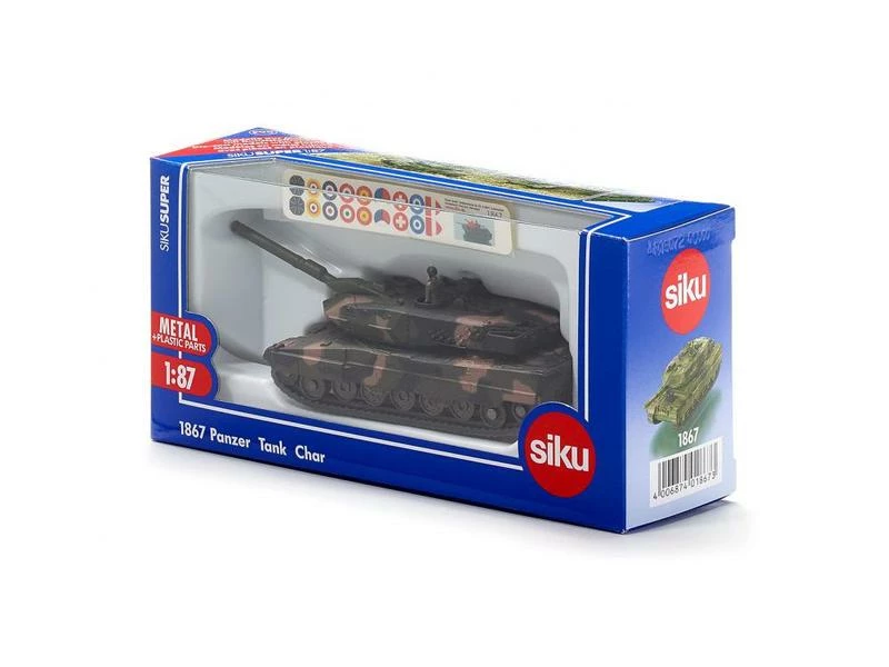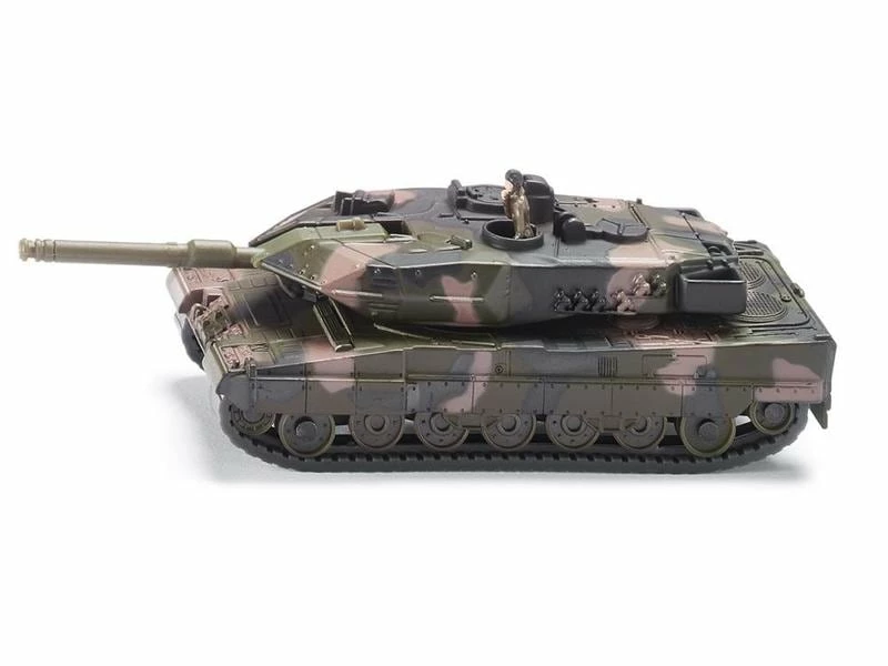 Das Metallmodell Leopard II, Version A6, Kampfpanzer besitzt bewegliche Ketten aus Kunststoff. Der Geschützturm ist um 360 Grad drehbar, hat eine bewegliche Kanone und einen Kommandanten obendrauf. Die hohe Detailgenauigkeit und eine aufwändige Tarnbedruckung runden das Bild dieses aussergewöhnlichen Militärmodells ab.